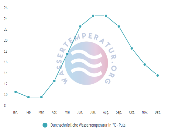 Durchschnittliche Badetemperaturen in Istrien, Pula nach Monaten:
