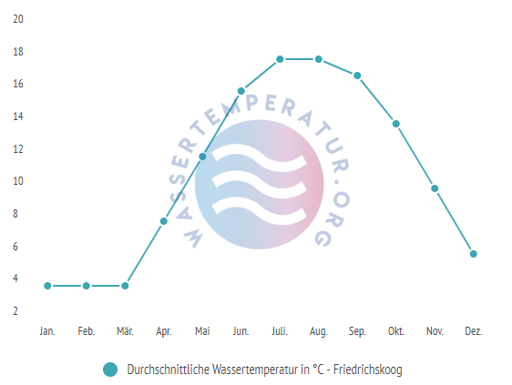 Im Folgenden sind die durchschnittlichen Badetemperaturen in der Nordsee bei Friedrichskoog je Jahreszeit aufgeführt.