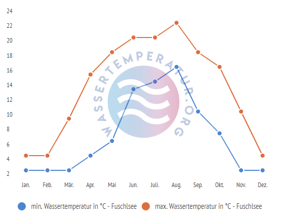 Vergleich der minimalen & maximalen Wassertemperaturen des Fuschlsees im Jahresverlauf
