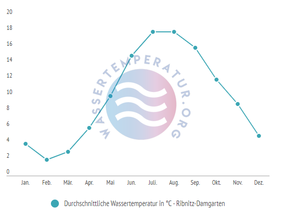 Durchschnittliche Wassertemperaturen in Ribnitz-Damgarten im Jahresverlauf:
