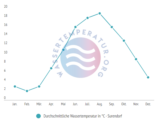 Durchschnittliche Wassertemperaturen in Surendorf im Jahresverlauf: